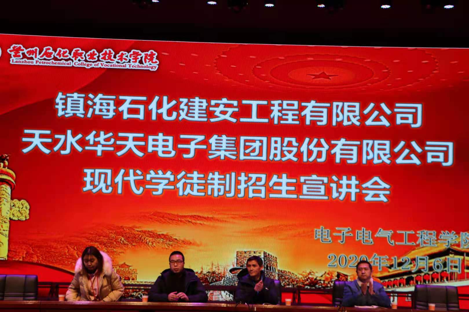 宣讲会上,张军代表公司向两家公司的到来表示欢迎,并向同学们传达了《兰州石化职业技术公司2020年现代学徒制订单培养招生暨综合评价录取职业适应性测试实施方案》文件精神。然后天水华天电子集团负责人通过ppt、视频、展板等方式向同学们介绍了关于我们,镇海石化建安工程有限公司负责人依次从公司荣誉、招生专业与计划、薪资与福利、企业奖助金、企业业绩、仪器设备及人员需求等多方面宣讲了关于我们。两家公司负责人现场对同学们提出的各类问题进行了详细的解答,并希望同学们积极报名参加。