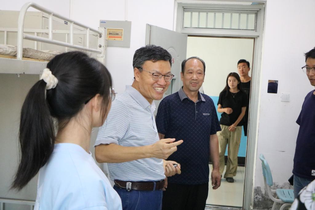 在走访过程中,领导老师们与新生进行了亲切的交谈,详细的了解了新生们入学以来的适应情况,和入学后的思想动态,并鼓励同学们之间要相互理解,相互包容,营造一个文明、和谐的宿舍环境。希望同学们尽快转变角色,熟悉新的环境,希望大家把握大学时光和机遇,利用有限的学习时间,增强自身的专业知识,做好职业规划,为将来的实习和就业做好充足的准备;遇到困难及时和辅导员、班主任沟通,特别是要注意锻炼身体,养成独立生活能力,希望同学们在新的大学快乐生活、快乐学习,珍惜大学时光、珍惜同窗之谊,共同度过美好的大学时光;要求他们要树立远大理想,在大学阶段形成正确的世界观、人生观、价值观,叮嘱同学们多读书,读好书,不断提升、充实自己。