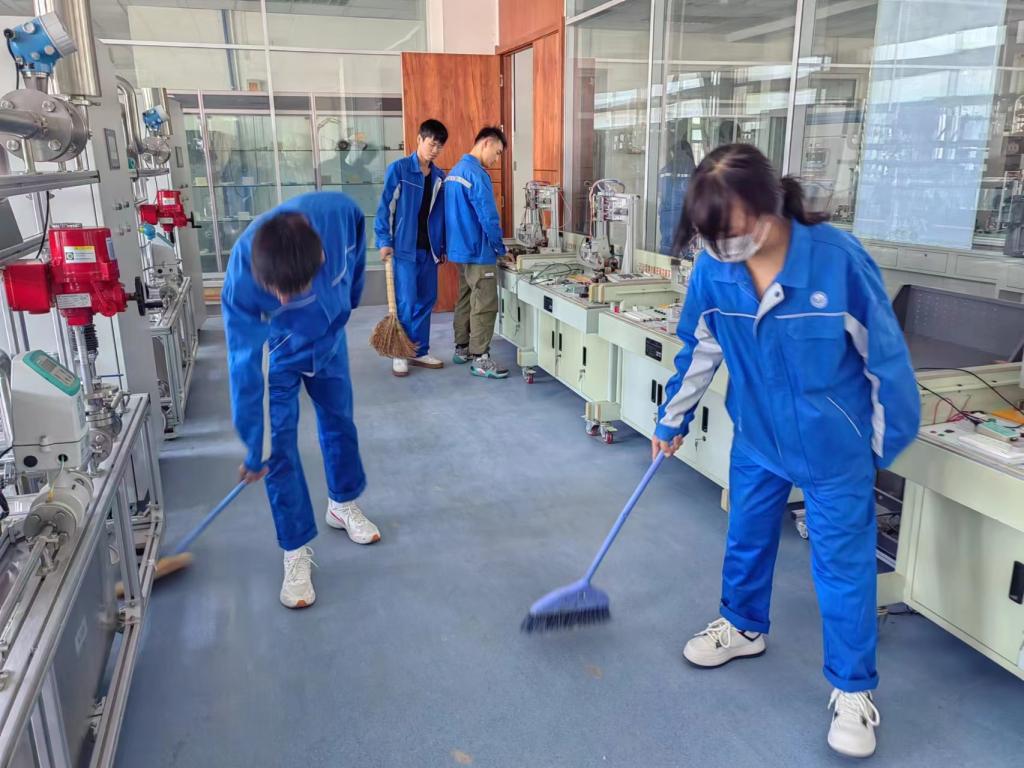 公司教师在组织员工对实训楼、第五工业中心、第二工业中心的专业实训室进行彻底的清扫,在清洁维护的过程中老师们生动形象地为同学们讲解各类设备、机床、实验平台的特点、用途以及适用范围,细致地为同学们介绍了部分机具设备的工作原理及其发展历史,在带领同学们进行卫生清洁劳动实践教育的同时为同学们上了一堂生动的专业思想教育课,既提高了同学们的劳动技能又提升了同学们的专业素养,进一步激发了员工参与劳动实践的热情。