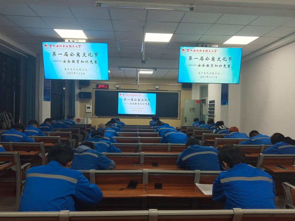 为增强公司员工的安全防范意识,促进员工提高安全防范能力和自我保护能力,切实加强公司安全教育和管理,避免或减少安全事故的发生,保障员工的生命安全,建设安全文明、和谐整洁、积极向上的公寓文化。11月2日晚,公司在东区主教学楼组织开展第一届公寓文化节——“安全伴我行,寓你共成长”安全知识竞赛活动。2023级全体新生参加此次竞赛。