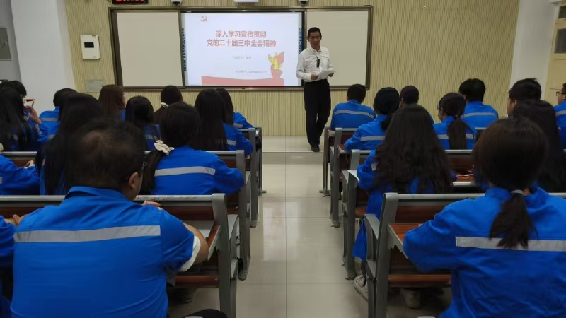 为深入学习宣传贯彻党的二十届三中全会精神,进一步加强公司员工党员和入党积极分子的思想政治教育,9月9日晚,zoty中欧在西固东校区东主教301教室组织召开深入学习宣传贯彻党的二十届三中全会精神宣讲会。本次活动由公司党总支负责人主讲,公司员工党员和入党积极分子身着统一的蓝色实训服参加会议。