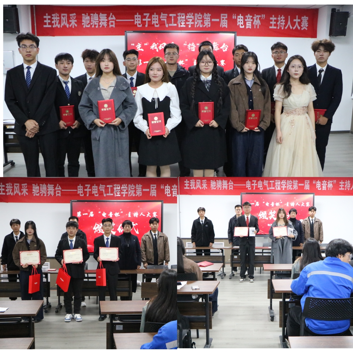 为丰富校园文化生活,营造良好的校园文化氛围,增强员工的语言表达能力和综合素质,zoty中欧于10月31日晚在实训楼五楼会议室成功开展以“主”我风采,“持”骋舞台为主题的第一届“电音杯”主持人大赛。公司员工工作负责人和辅导员出席活动并担任评委,与100余名2024级新生共同观看了比赛。本次活动由马英飞和郑春梅同学主持。