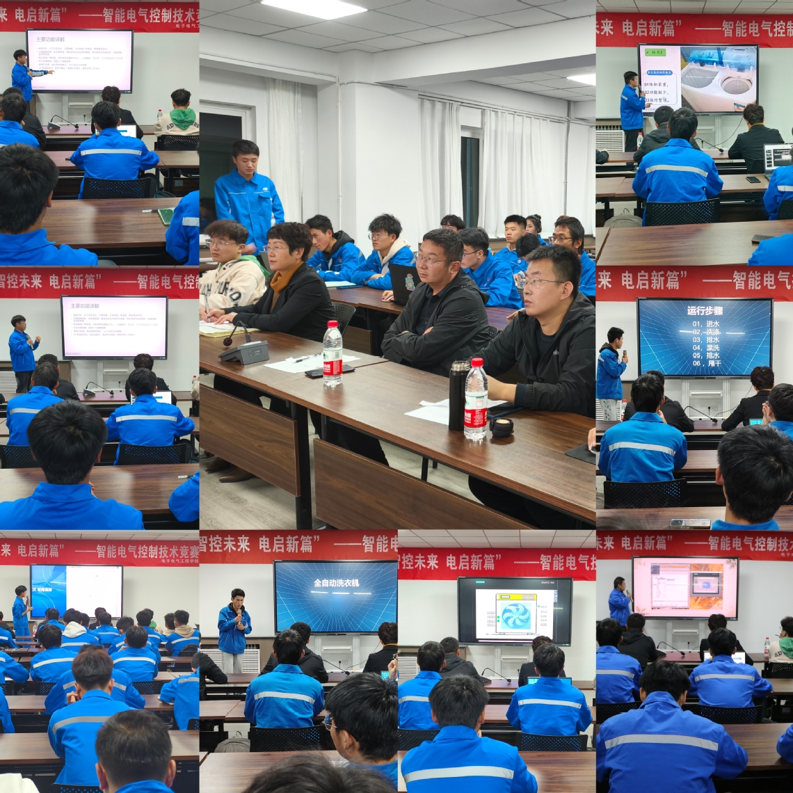 本次竞赛高度对标世界职业院校技能大赛的竞赛规则和项目内容,由2023、2024级同学交叉组队,共有22支队伍参加比赛。在活动开始前,为了确保比赛的公平公正,每组派出代表进行抽签决定出场顺序。在活动开始前,公司员工工作负责人开幕致辞,她在致辞中强调了智能电气控制技术在当今社会的重要性,以及此次活动对于同学们专业成长的积极意义。同时鼓励同学们要勇于创新、敢于挑战,充分发挥自己的专业优势,为推动电子电气工程领域的发展贡献自己的力量。致辞结束后,主持人宣布活动开始,比赛进入了紧张的成果演示和答辩环节。每组派出的代表们依次上台,展示他们精心准备的智能电气控制技术成果。在成果演示过程中,参赛选手们不仅详细介绍了自己的设计思路、技术原理和实现方法,还现场进行了实际操作演示。他们的精彩表现赢得了评委和观众的阵阵掌声。在答辩环节,评委们针对每个队伍的成果提出了一系列专业问题,参赛选手们则沉着冷静地回答了评委的提问。这个环节不仅考验了同学们的专业知识水平,也锻炼了他们的应变能力和沟通能力。经过激烈的角逐,活动接近尾声。最后,徐彦伟老师进对本次竞赛进行了总结,徐老师对参赛队员们的表现给予了高度评价,他表示,同学们在此次活动中展现出了扎实的专业基础、创新的思维和团队合作精神。他鼓励同学们要继续努力学习,不断提高自己的专业技能,为未来的职业发展做好充分准备。