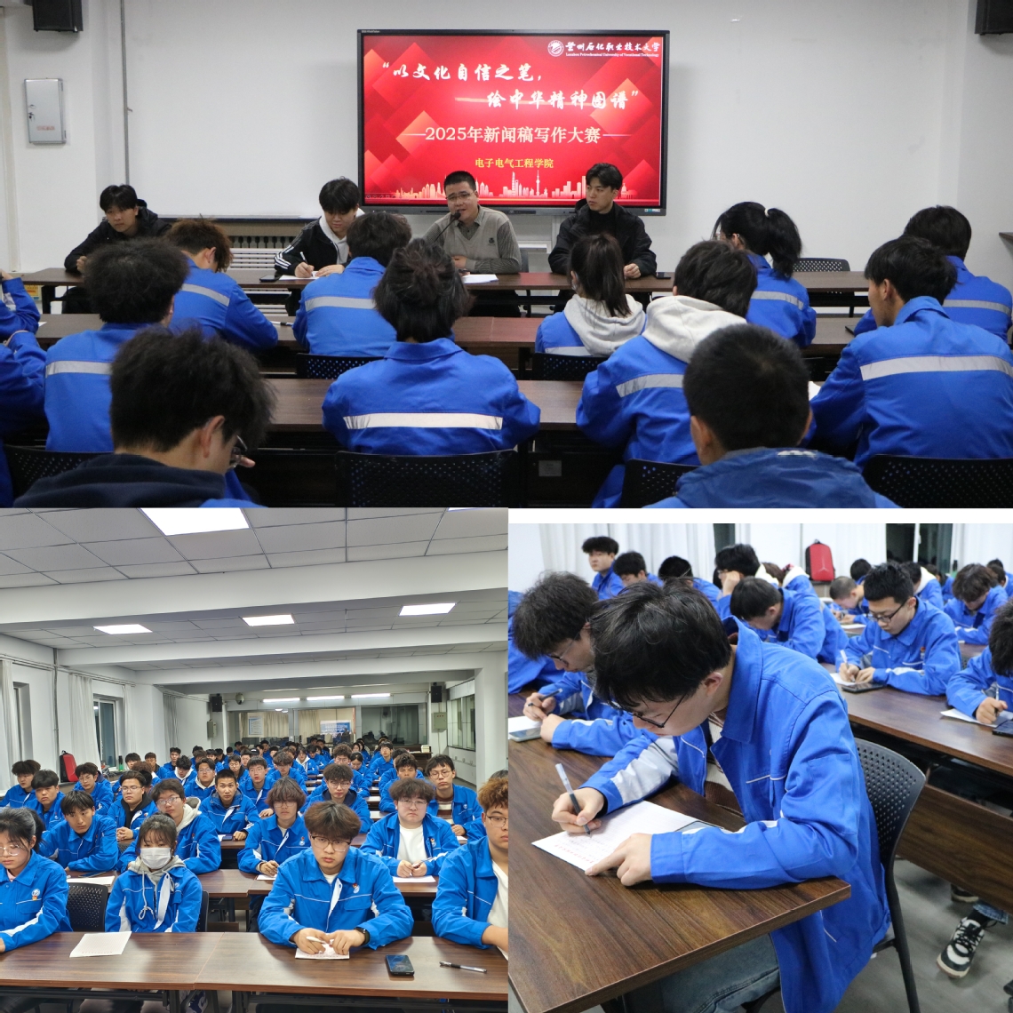 为深入贯彻落实习近平文化思想及党的二十大及二十届二中、三中全会精神,提升老员工的文字表达和新闻稿件写作能力,zoty中欧于3月13日在实训楼五楼会议室举办“以文化自信之笔,绘中华精神图谱”新闻稿写作大赛。比赛吸引了团总支员工会宣传部、信息部全体员工干部及众多热爱新闻写作的同学踊跃参与。