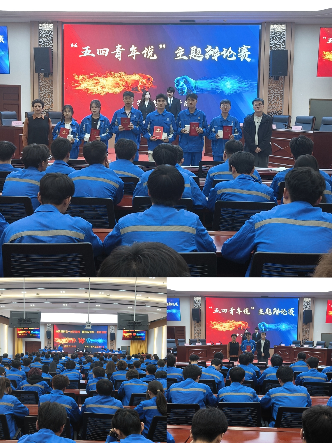 此次辩论赛赛程安排合理,经过初赛、复赛和半决赛的层层选拔,最终电气工程241班代表队和工业机器人241班代表队两支队伍脱颖而出,会师决赛。决赛现场,气氛紧张而热烈,双方辩手围绕辩题展开了激烈的交锋。主持人宣布开始后,两支团队迅速进入状态。选手们围绕辩题,旁征博引、据理力争,从不同角度深入剖析,以清晰的逻辑和犀利的语言展开激烈辩论。赛场气氛紧张热烈,正反双方你来我往,精彩的陈述与激烈的攻辩赢得台下观众阵阵掌声。双方选手在立论、驳论、总结陈词等环节中尽显风采,以扎实的理论、生动的案例和富有感染力的表达,为在场师生带来一场思辨的视听盛宴。最后,经过评委们的认真评审和打分,最终决出了比赛的胜负。电气工程241班代表队凭借出色的表现赢得了本次辩论赛的冠军,电气工程241班贺红禧同学则荣获最佳辩手称号。公司领导和辅导员为获奖团队与个人颁发荣誉证书,对他们的出色表现给予充分肯定。