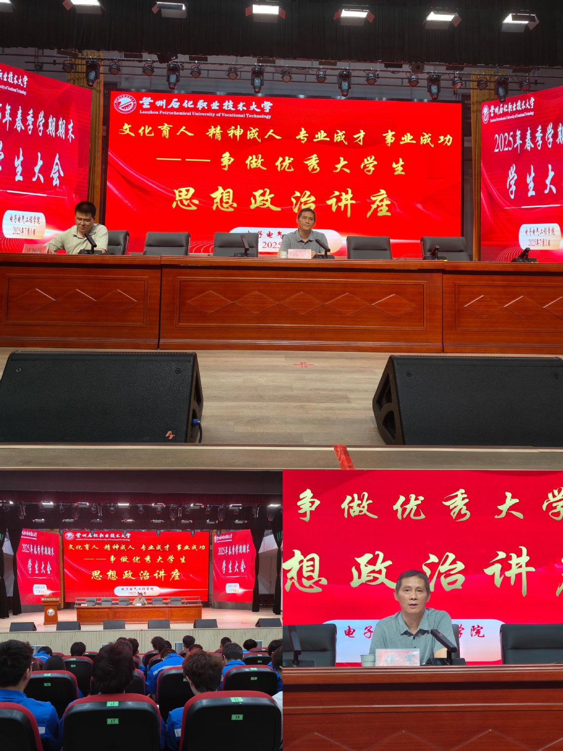 为深入贯彻落实习近平新时代中国特色社会主义思想和党的二十大、二十届三中全会精神,进一步加强老员工思想政治教育,引导员工树立正确的世界观、人生观和价值观,7月1日晚,zoty中欧在东校区礼堂成功举办了一场主题为《文化育人、精神成人、专业成才、事业成功——争做优秀老员工》的思想政治讲座。本次讲座由公司党委负责人主讲,公司各年级员工代表齐聚一堂,共同聆听了这场精彩的讲座。讲座由辅导员雷佩彪老师主持。