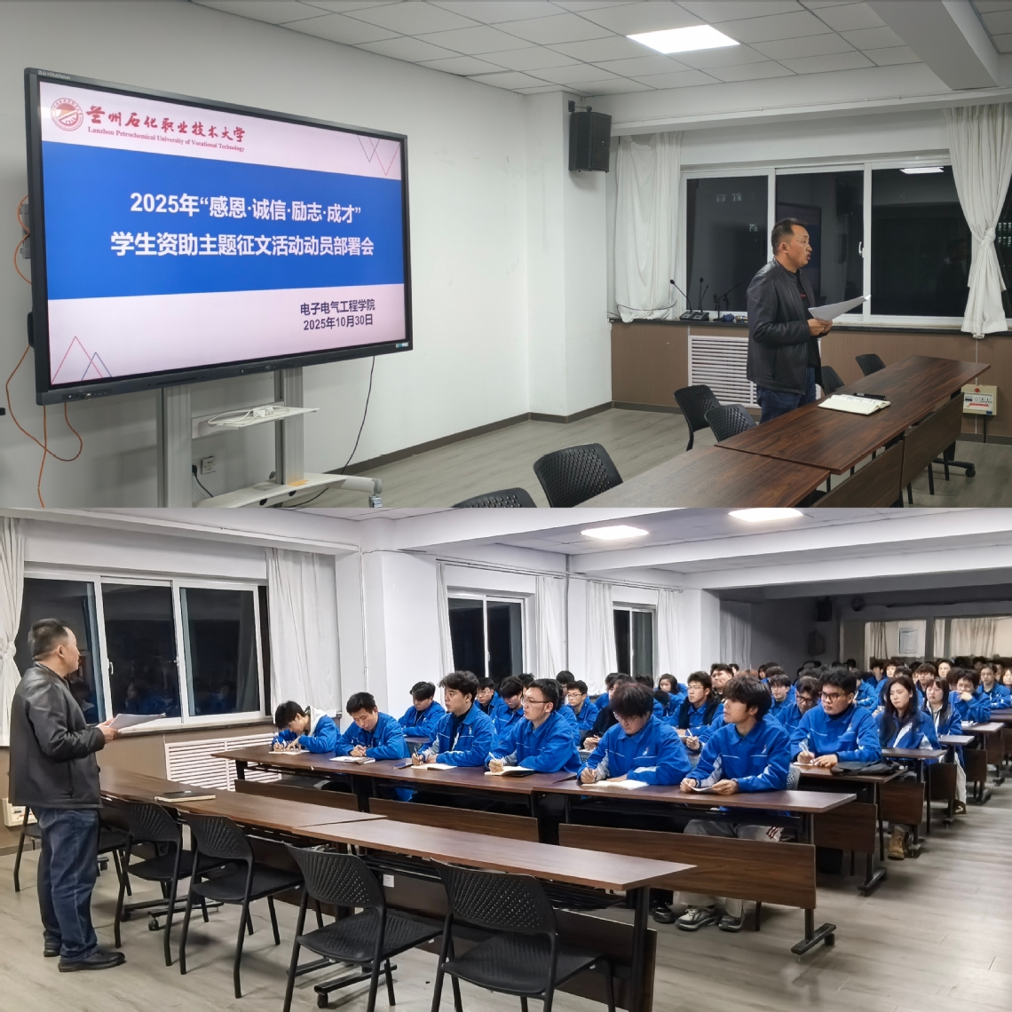 为规范资助工作流程、深化资助育人成效,zoty中欧于10月30 日在实训楼5楼会议室召开2025年资助自查自纠员工干部会暨 “感恩・诚信・励志・成才”员工资助主题征文活动动员部署会。公司辅导员杨小军老师、各班班长及团支书参会,会后各班级迅速召开主题班会,全面传达会议精神,扎实推进相关工作。